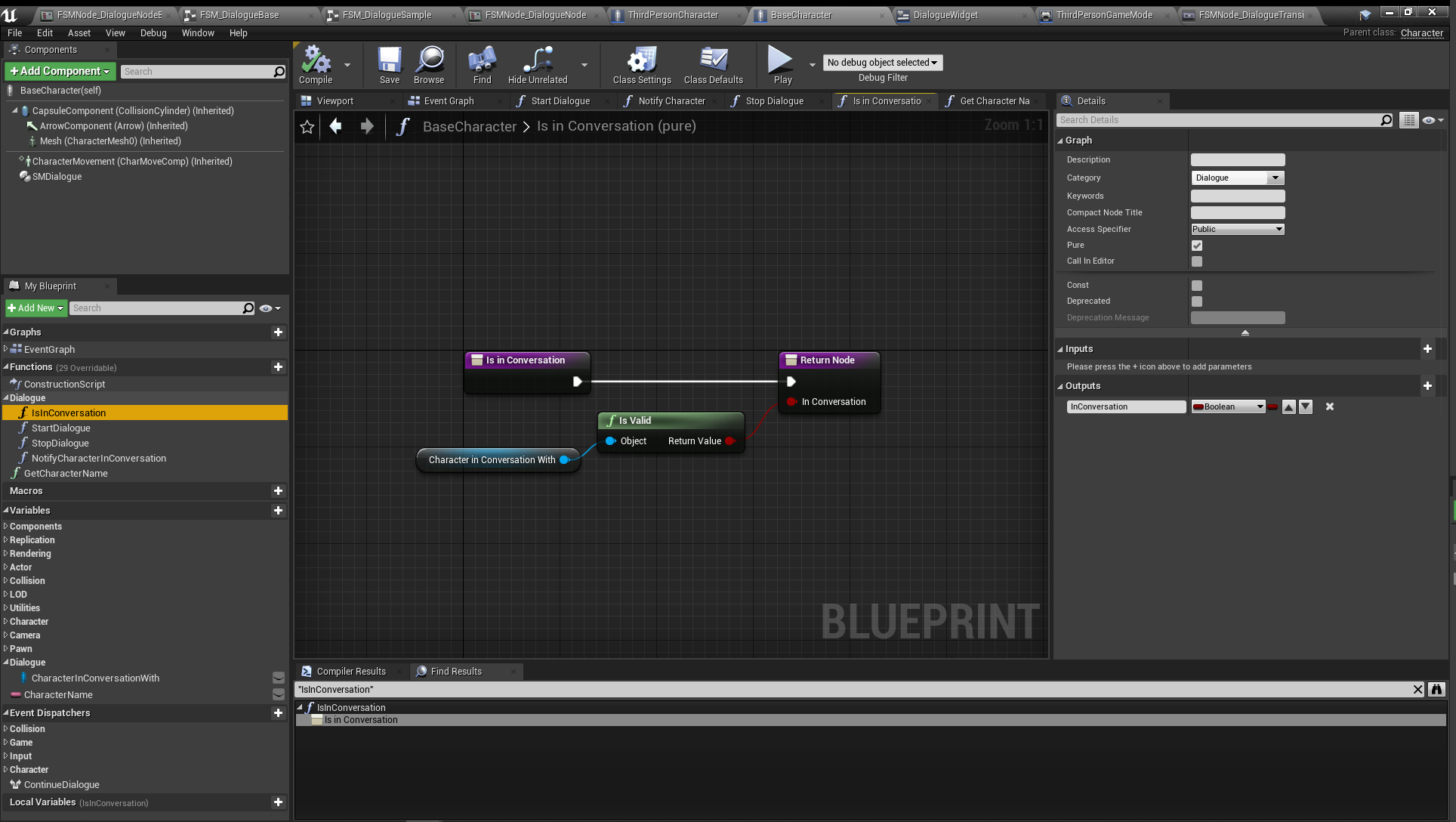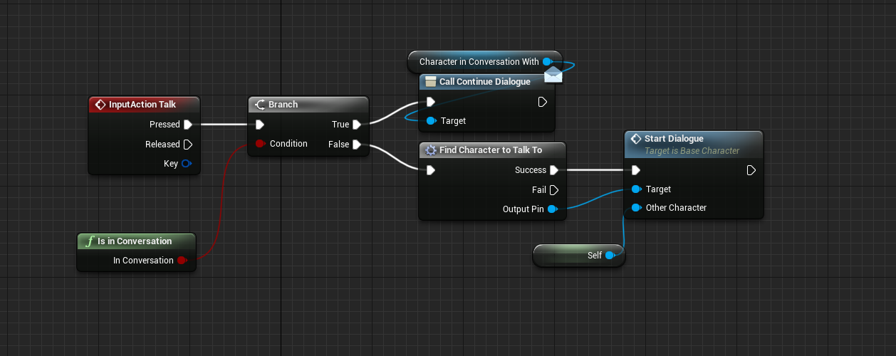 IsInConversationthat checks that theCharacterInConversationWithis valid and returns a bool.