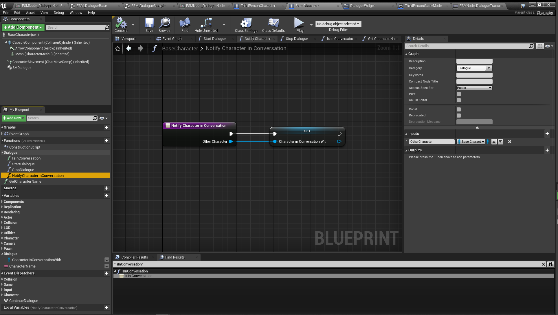 NotifyCharacterInConversationthat accepts a BaseCharacter argument and sets the CharacterInConversationWith