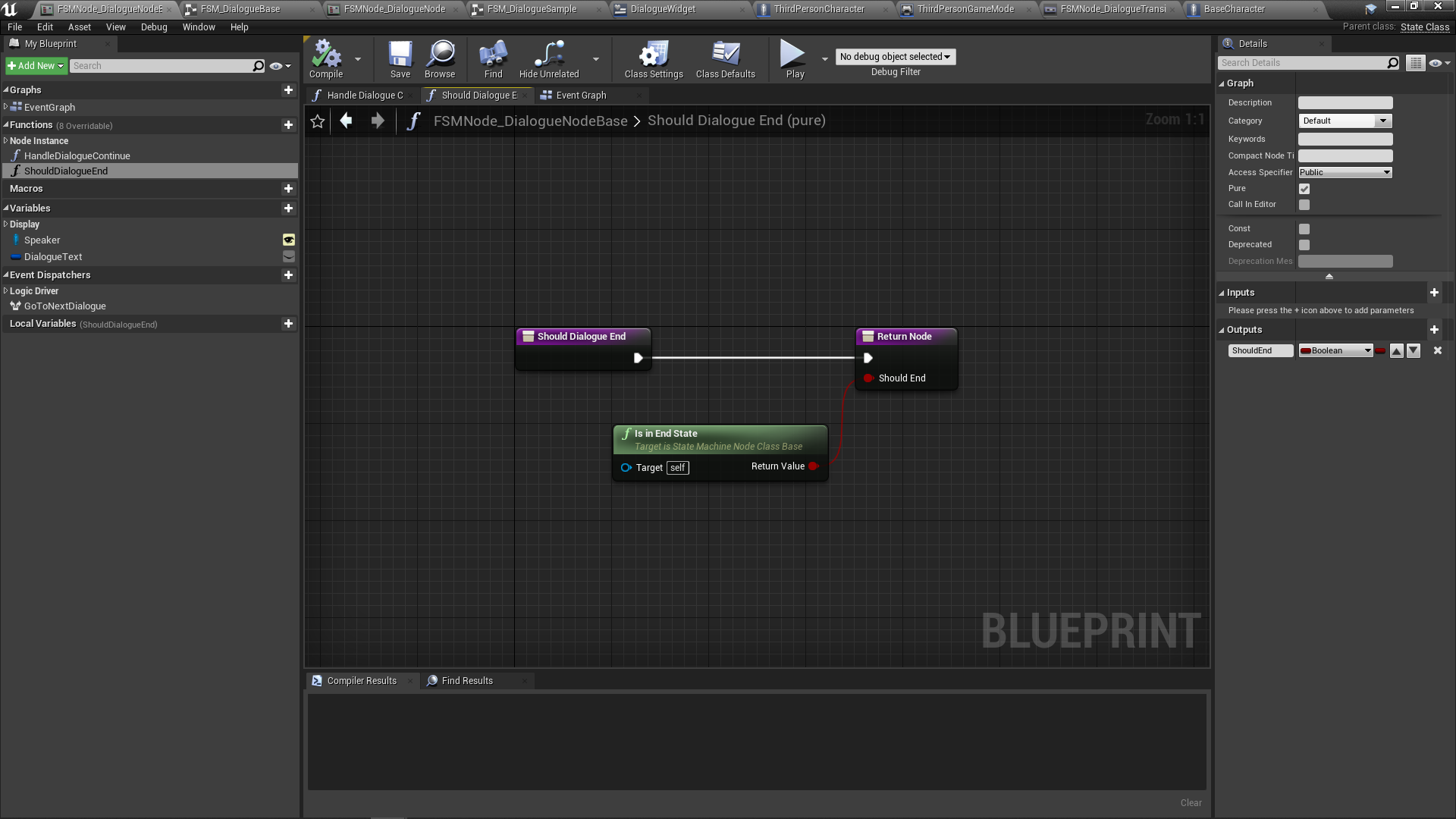 ShouldDialogueEnd. - For now just check if the state is an end state.