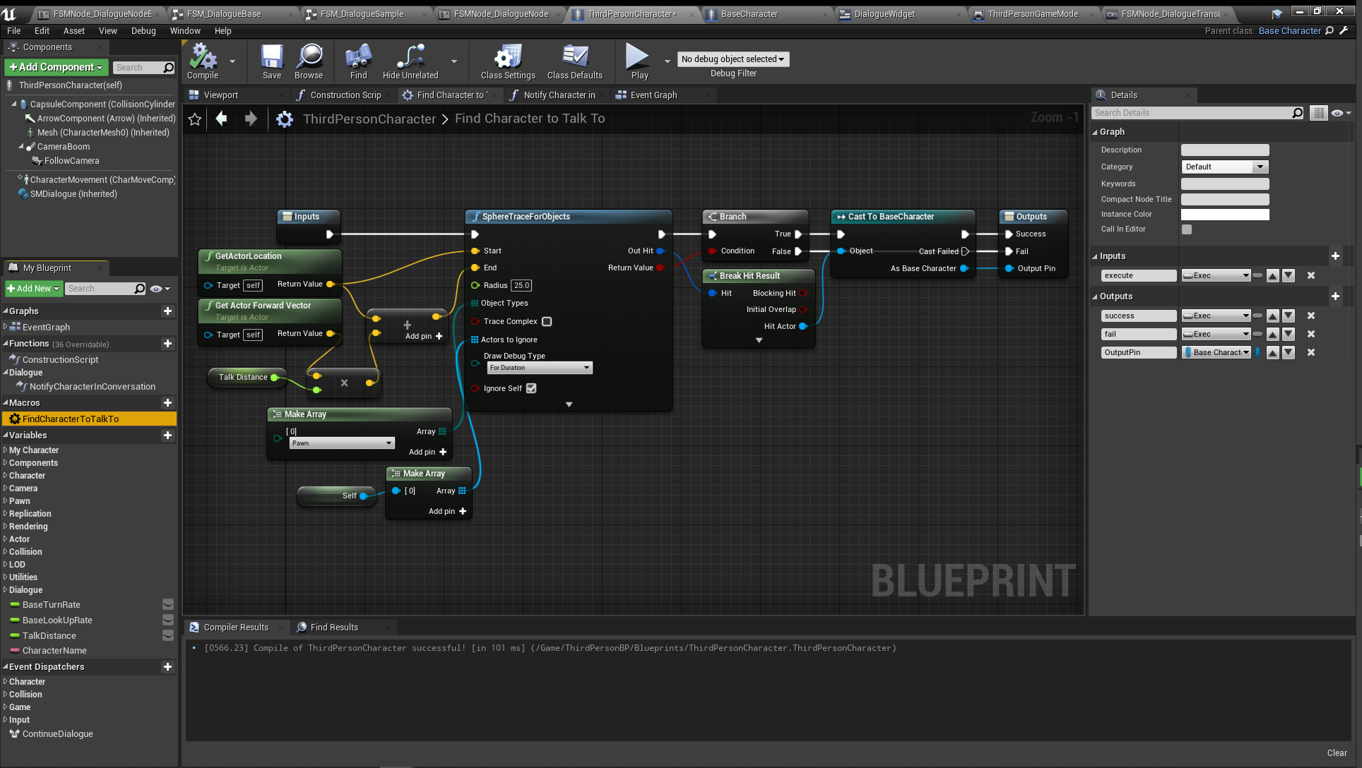 - ThirdPersonCharacter needs to listen for input and find NPCs to talk to