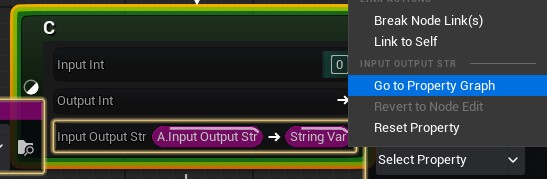 UPROPERTY(BlueprintReadWrite,Category="Input",meta=(LD_PropertyDirection="Input"))FStringInputStr;UPROPERTY(BlueprintReadWrite,Category="Output",meta=(LD_PropertyDirection="Output"))FStringOutputStr;// Accepts "Input,Output" or "Both"UPROPERTY(BlueprintReadWrite,Category="InputOutput",meta=(LD_PropertyDirection="Input,Output"))FStringInputOutputStr;